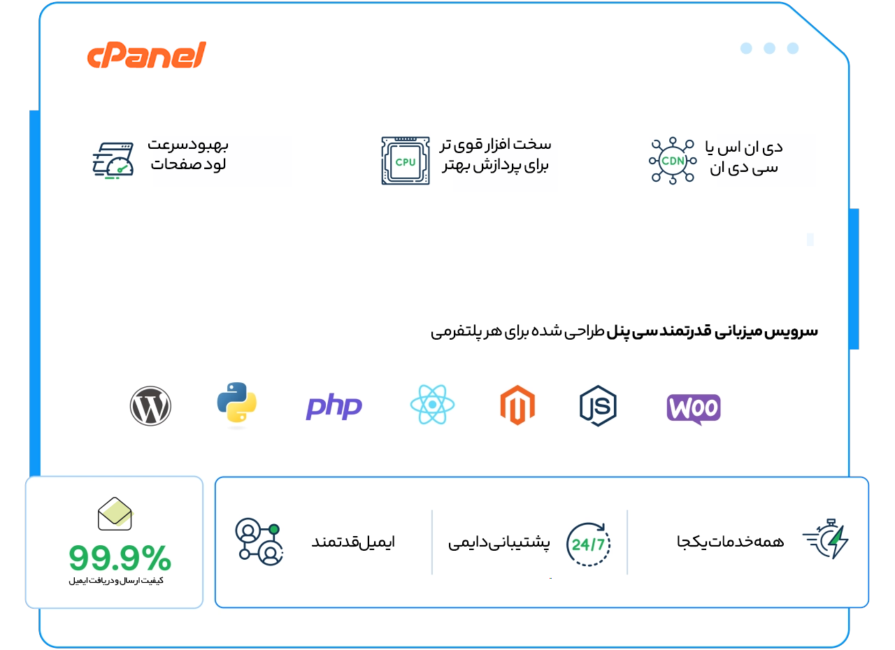 سی پنل اولین و محبوب ترین کنترل پنل میزبانی وب مبتنی بر لینوکس است. سی پنل حتی افراد غیر فنی را قادر میسازد تا بدون نیاز به هیچ مهارت فنی، کل میزبانی وب را مدیریت کنند.رابط گرافیکی بصری سیپنل، انجام کارهای پیچیده را با یک کلیک آسان میکند. این رابط به کاربران اجازه میدهد تا وبسایتها، دامنهها، ایمیلها و سایر جنبههای حساب میزبانی خود را بدون نیاز به دانش فنی مدیریت کنند. این رابط به صاحبان وبسایتها اجازه میدهد تا تمام عناصر میزبانی وب، مانند تنظیمات، ایمیل، فایلها، FTP، پایگاههای داده و DNS را مدیریت و پیکربندی کنند.